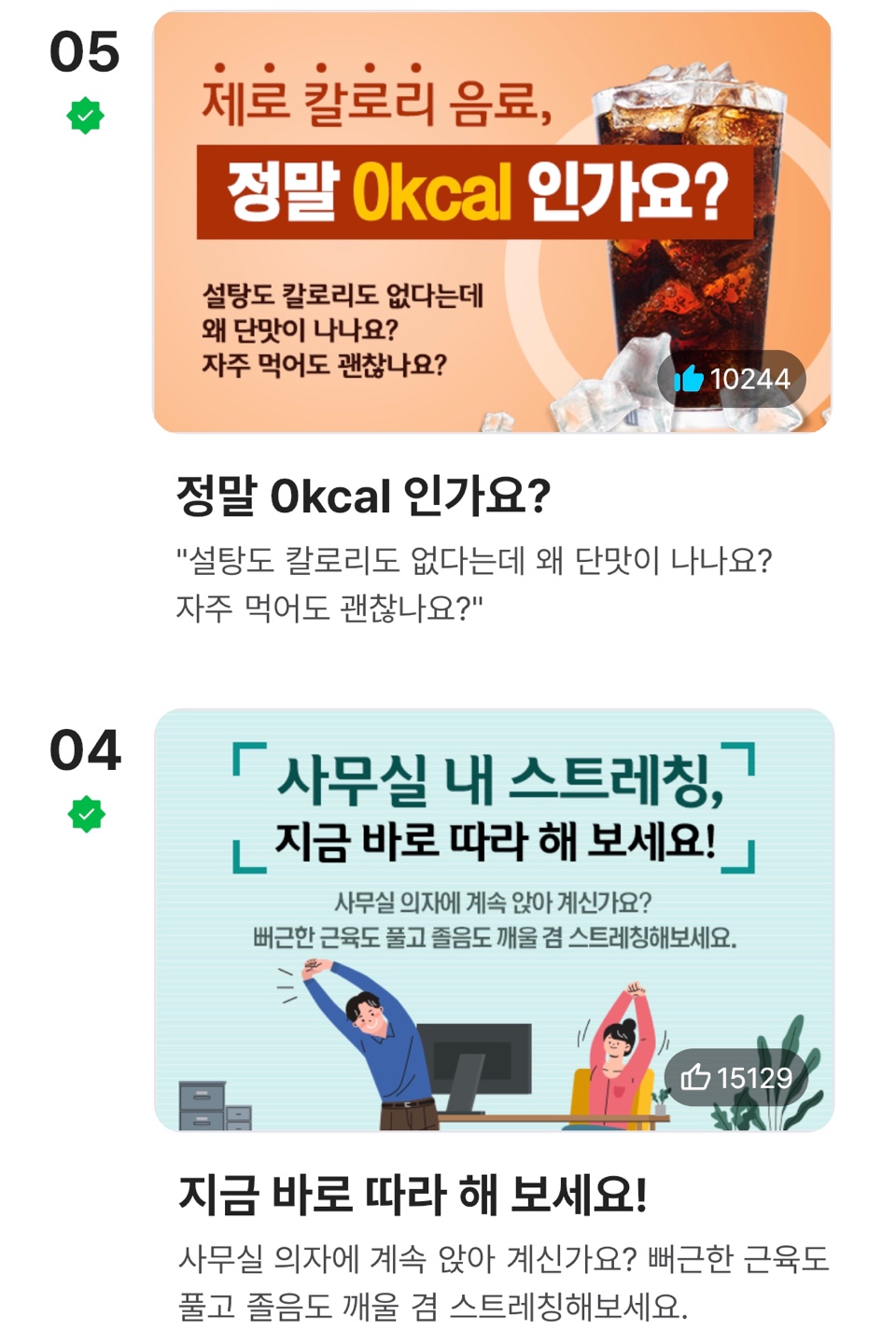 √ 매주 업데이트되는 건강카드를 통해 건강지식과 정보를 얻을 수 있습니다.